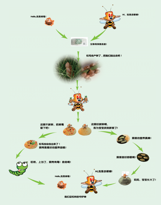 寄生蜂传递病毒防治害虫方法(专利号:ZL 97 109294.x)绿叶松微型生物制剂(专利号:ZL 96 119673.4)